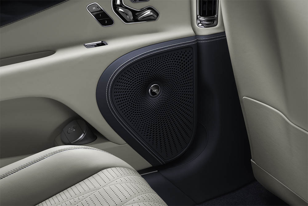 وكجزء من عملية التطوّر الأحدث التي تشهدها منتجات وتقنيات Naim for Bentley، يتميّز نظام الصوت في Flying Spur الجديدة عبر 21 مكبّراً للصوت بقوّة تضخيم للصوت قدرها 2,200 واط وتقنية تحويل الطاقة الفعّالة لصوت الجهير Active Bass Transducers.