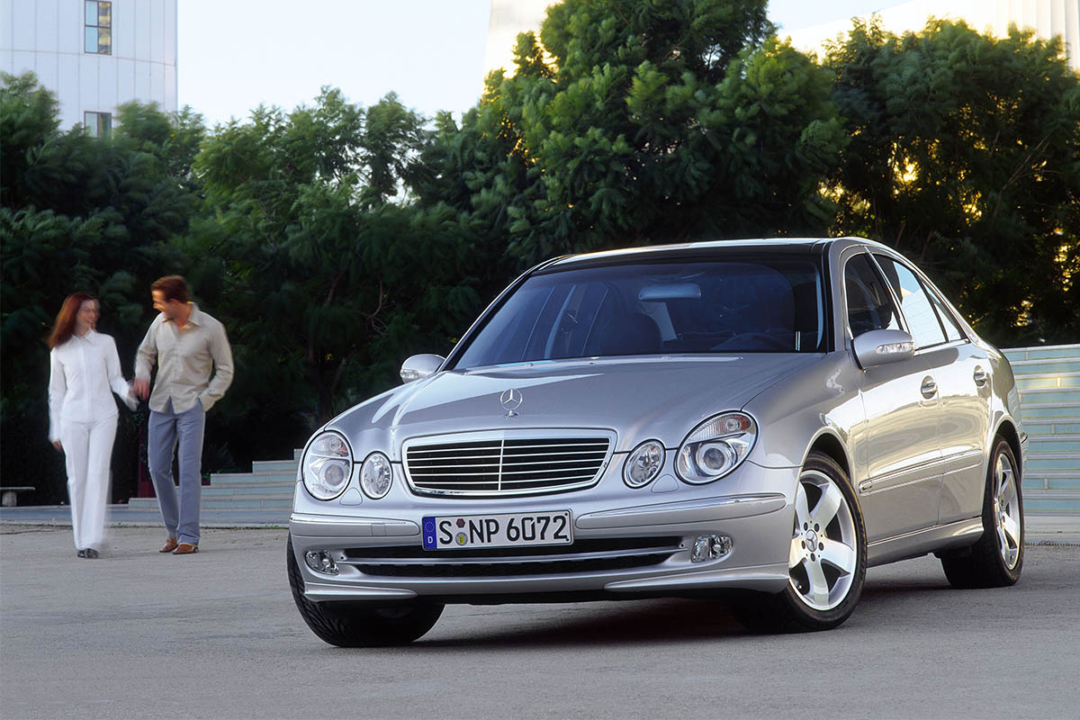 - في عام 2002، رأينا تطور آخر أتى باسم W211 E-Class ليتم إصلاح العديد من المشكلات التقنية والمتعلقة بالجودة لتحصل لاحقاً خلال عام 2007 على نظام تفادي اصطدامات بشكل قياسي، مع زيادة سعة المحرك من 5 إلى 5.5 لتر، وقد جاء هذا الجيل على هيئة سيدان وواجن فقط أيضاً.