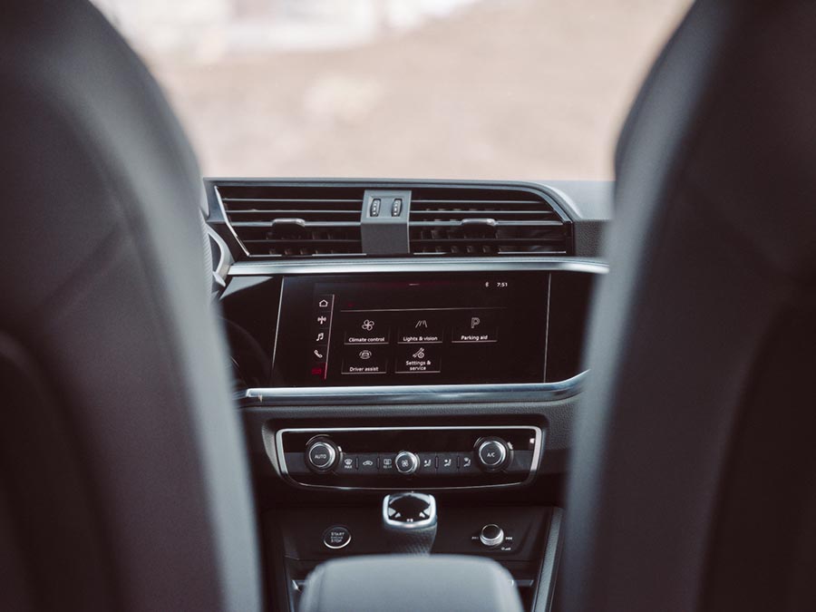 في أودي كيو 3، كل المعلومات التي تريدها موجودة امامك من خلال شاشة رقمية امام السائق، اما التحكم بنظام الترفيه وحتى أنظمة القيادة المساعدة فتتم من خلال الشاشة اللمسية في الكونسول الوسطي التي أصبحت علامة فارقة في طرازات أودي.