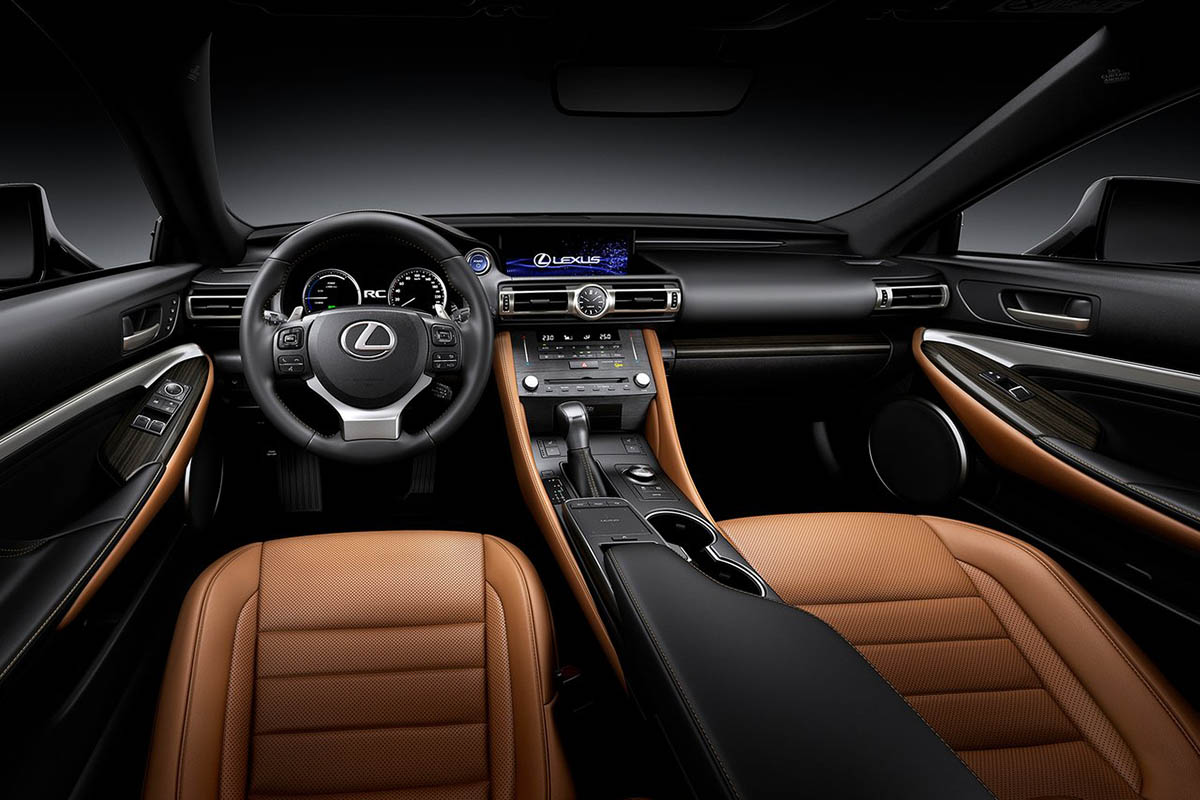 أجرت لكزس تحسينات طفيفة بمقصورة RC، إذ أتت بساعة هي نفسها المستخدمة في LC، ملمس راقي بأزرار المكيف والراديو، اضافة الى تحديث تصميم الكونسول الوسطي بشكل يوفّر راحة أكبر للأقدام، مع إتاحة 7 ألوان في المقصورة بينها أصفر جديد و11 لون للخارجية.
