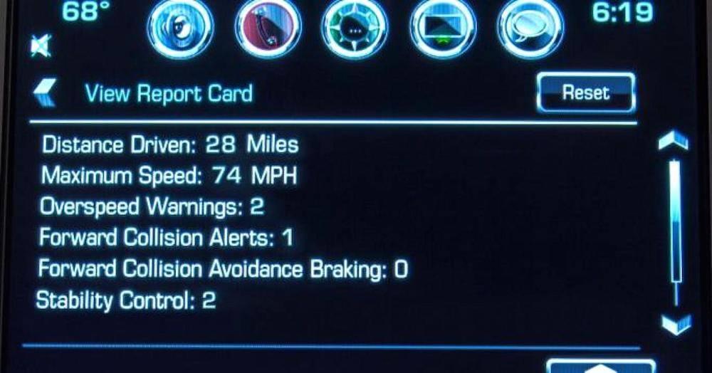 هذا وبعد أن يعود أي من اولادك بسيارتك، يمكنك الدخول إلى المقصورة ووضع رقم PIN الخاص بك مرة أخرى والضغط على View Report Card كي ترى تقرير شامل عن كل ما تم فعله أثناء تفعيل نمط قيادة الشباب، وهو ما يتضمن عرض مختلف المعلومات مثل المسافة التي تم قطعها، السرعة القصوى التي تم السير بها، عدد المرات التي تم فيها تفعيل مختلف أنظمة الأمان مثل التنبيه من الاصطدامات الأمامية، وحتى عدد المرات التي قام فيها أحد أولادك بمحاولة التسابق مع سيارة أخرى أمامهم.