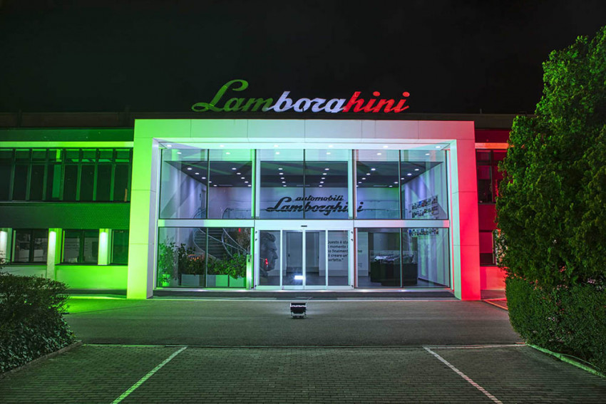 وكدليل على الوحدة الوطنية والدعم المقدَّم على هذا المستوى في مواجهة الحالة الطارئة التي فرضها فيروس كورونا، تقوم لامبورغيني بإنارة المبنى التاريخي لمقرّها الرئيسي في سانتا أغاتا بولينييزي بألوان العلم الإيطالي.