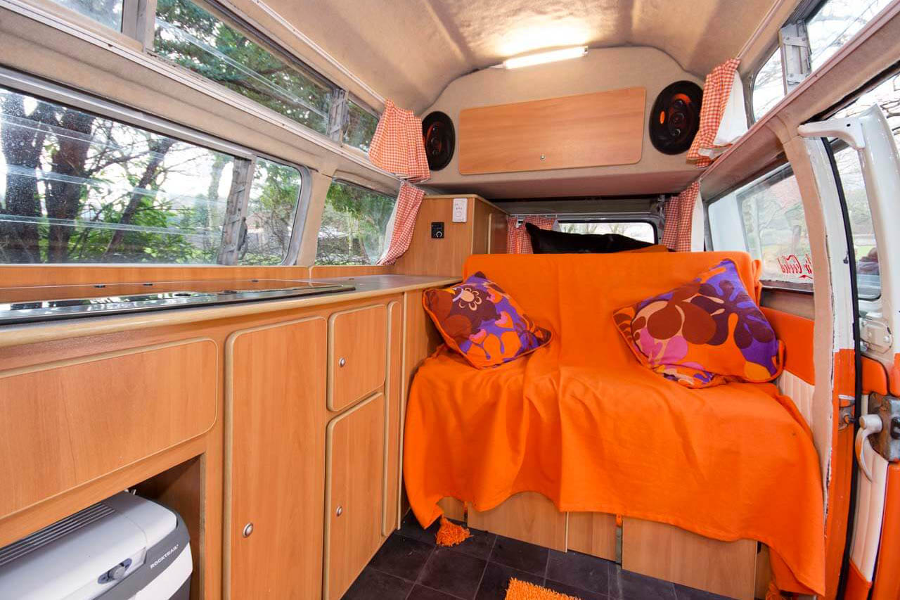 اما المقاعد التي لم تنتزعها، فيمكن تحويلها الى كنبات مريحة، عبر اضافة الوسادات اليها، ويفضل ان تكون هذه الوسادات من لون الفراش لتحافظ على اناقة بيتك المتنقل.