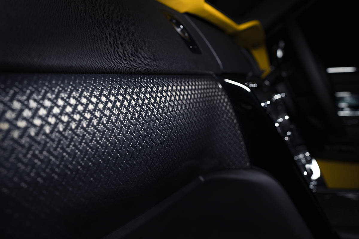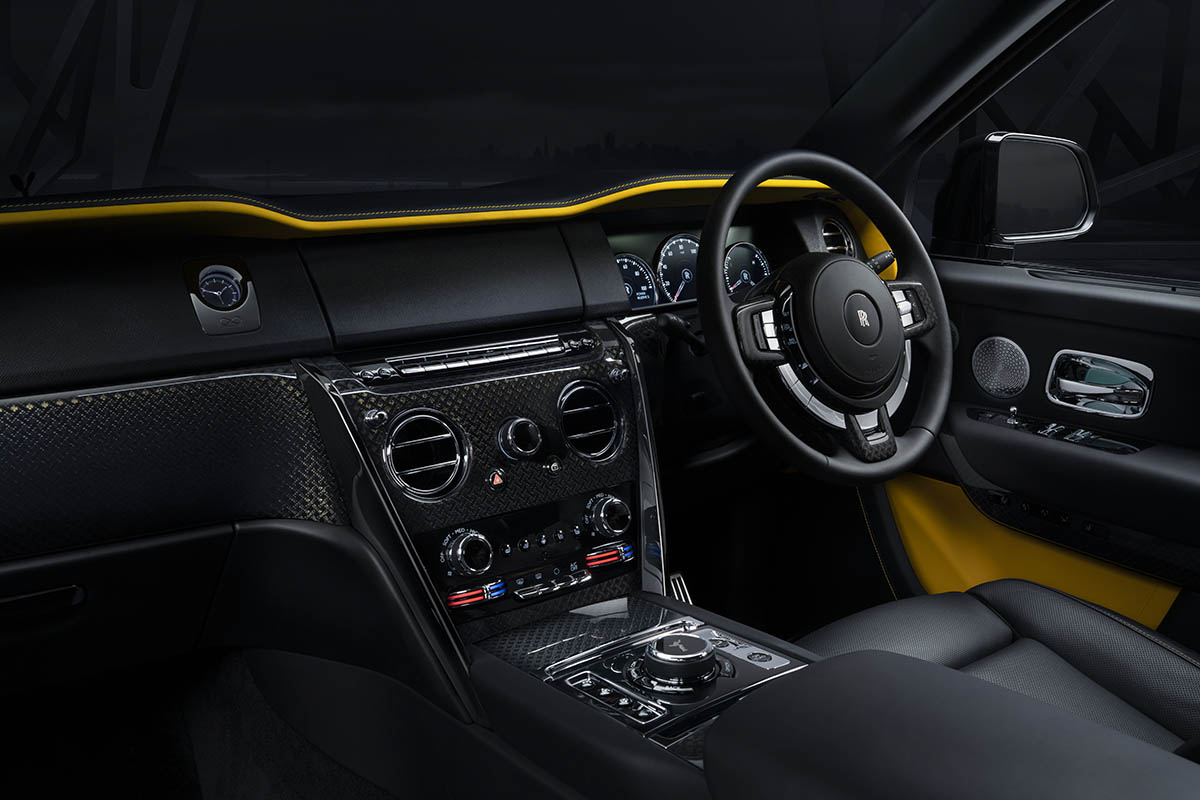 وتتجسّد هذه الروحية بشكل مثالي في كسوة بلاك بادج من الكربون التقني. وانطلاقاً من فلسفة الأب المؤسس السير هنري رويس "حين لا تجده، قم أنت بتصميمه"، شهد التعاون بين مصممي رولز-رويس ومهندسيها وحرفييها إنشاء مادة جديدة فاخرة جداً. فبإيحاء من روائع العمارة الحضرية، تم تطوير لمسة نهائية من ألياف الكربون المنسوجة بشكل يحقق أشكالاً هندسية متكررة عالية الدقة تنتج تأثيراً قوياً ثلاثي الأبعاد.