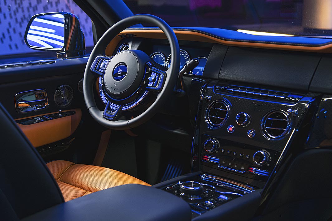 وتتجسّد هذه الروحية بشكل مثالي في كسوة بلاك بادج من الكربون التقني. وانطلاقاً من فلسفة الأب المؤسس السير هنري رويس "حين لا تجده، قم أنت بتصميمه"، شهد التعاون بين مصممي رولز-رويس ومهندسيها وحرفييها إنشاء مادة جديدة فاخرة جداً. فبإيحاء من روائع العمارة الحضرية، تم تطوير لمسة نهائية من ألياف الكربون المنسوجة بشكل يحقق أشكالاً هندسية متكررة عالية الدقة تنتج تأثيراً قوياً ثلاثي الأبعاد.