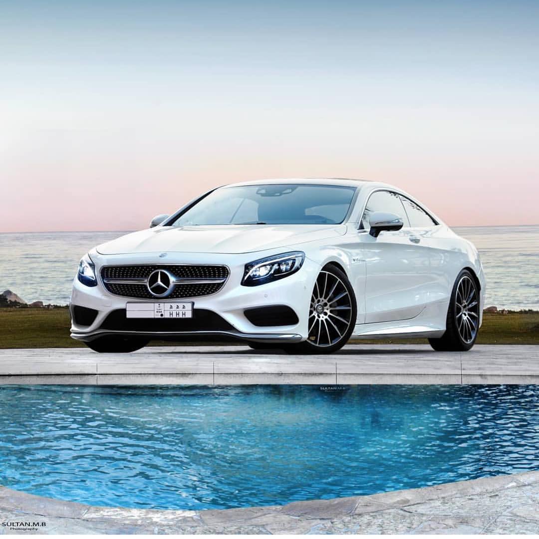 مرسيدس S500 كوبيه، تفصل بين حدود البحر والسماء، وكأنها تخبر ان لا شيء يحد روعة واناقة هيكلها. بلونها الابيض يخيل اليك ان السيارة اخرجت من خلفية السماء من ورائها وكأنها تنتمي الى هذا العالم اللا محدود.