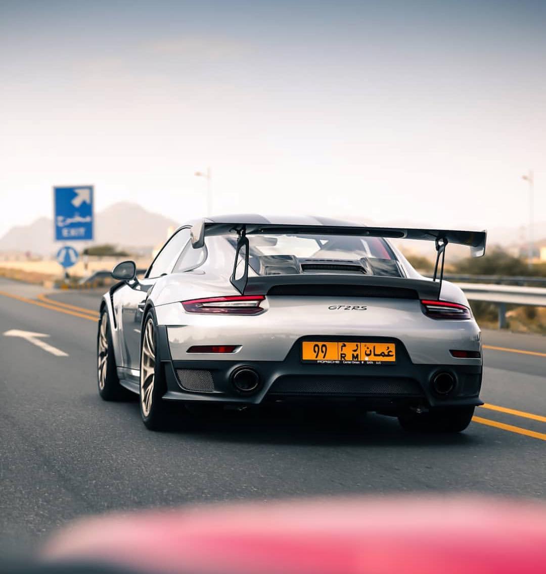 للوهلة الاولى يخيل اليك ان هذه الـ بورشه GT2 RS بصدد الانطلاق في سباق شهير. وضعيتها على الطريق السريع توحي بالسرعة والانطلاقة المليئة بالحماس. سيارة رمادية رياضية خارقة تعدك بجولة خارقة على طرقات عمان.