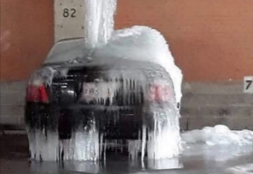 ليس من الواضح ما إذا كان هناك أي ضرر للسيارة. لكن طالما كانت النوافذ والأبواب مغلقة بإحكام، فمن المفترض أنه لا توجد مياه بالداخل. ومع ذلك، فإن هذا القدر الكبير من الجليد الذي غطى السيارة ليس خفيفاً بالتأكيد، ما جعل من الصعب تحديد نوع تلف الجسم الذي قد يكون موجوداً تحته.