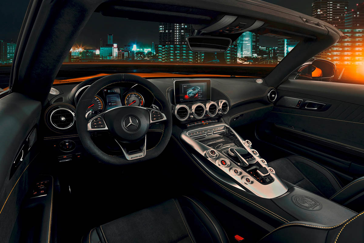 يستطيع السائق أن يضبط خصائص سيارة AMG GT S Roadster حسب متطلباته الفردية باستخدام مُتحكم AMG DYNAMIC SELECT. وتتوفر خمس وضعيات للقيادة، هي: "C" (كمفورت)، "S" (سبورت)، "S+" (سبورت بلس)، "ريس" (RACE)، والإعدادات المبرمجة فردياً "I" (إنديفجوال).