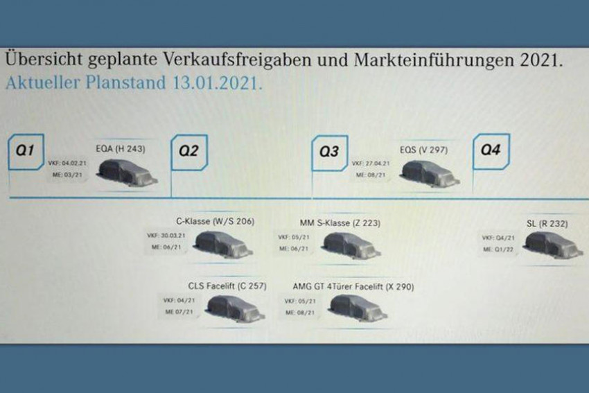 أظهرت صورة تم تحميلها على الإنترنت من قبل مستخدم مجهول متى تخطط مرسيدس لإطلاق سبعة طرازات جديدة في عام 2021.