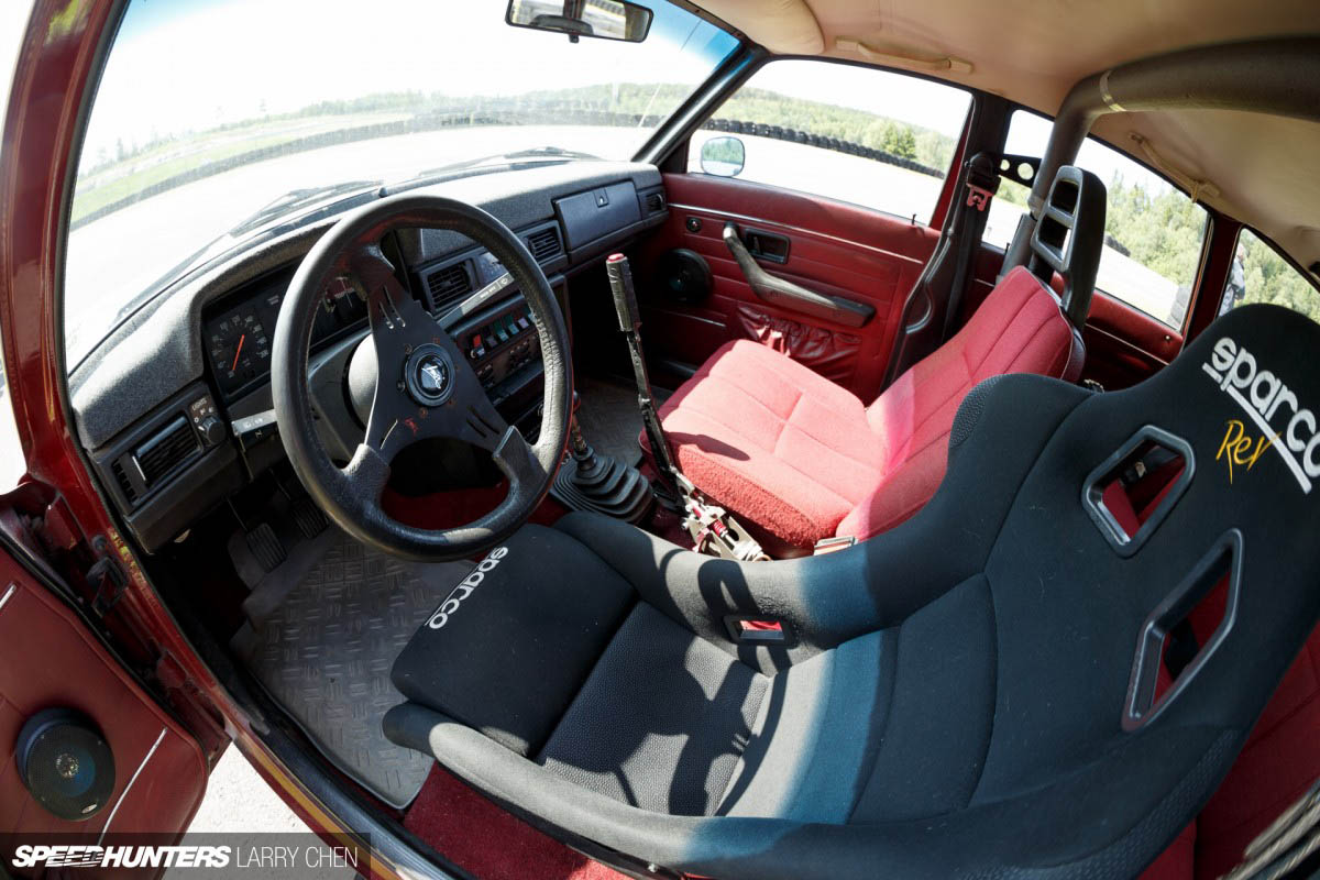 في الداخل، جُهزت السيارة بقفص حديدي، ومقعد رياضي للسائق من نوع ريكارو وفرامل يد هيدروليكية تجعلها مناسبة لرياضة الدريفت (الإنجراف أو التفحيط).
