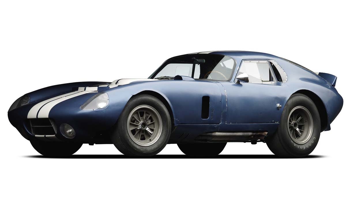 كان النموذج الأولي لشيلبي كوبرا دايتونا كوبيه، المصنوع بوسائل متواضعة مقارنة بمعايير اليوم، في متجر في البندقية، كاليفورنيا. في عام 1965، احتل شيلبي المركز الأول، وكان أول فريق سباقات أمريكي يفوز، حيث حصل على 9 من 12 سباقا في فئته، مع انتصارات حاسمة في سباقات تاريخية أكثر، مثل سباق دايتونا 24 ساعة، سباق الجائزة الكبرى في مونزا، والسباق الشاق الذي يبلغ طوله 1000 كيلومتر في نوربورغرينغ نوردشلايفه، وهو مسار غابات بطول 22.5 كم.