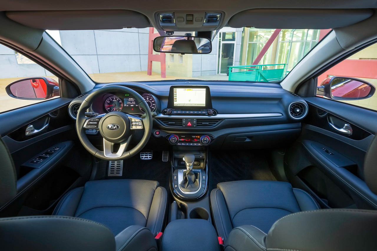 من الداخل تغيرت كيا سيراتو بشكل كبير، ويبدأ التغيير من المقود وشاشة المعلومات والترفيه التي تتوسط السيارة في الأمام والتي تأتي بحجم 8 انش، كما تدعم نظامي أبل كاربلاي وأندرويد أوتو، بالإضافة إلى تحكم أسهل بالشاشة من السابق.