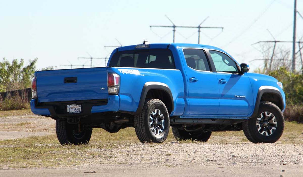 اما فيما خص الناحية الخلفية لسيارة تويوتا تاكوما 2021 فهي تأتي بتصميم مميز، ومصابيح جانبية، ويتوسط الخلفية كلمة تاكوما بالإنجليزية بالاحرف الكبيرة، ومن ثم ياتي المصد الخلفي البلاستيكي باللون الاسود اسفل كلمة تاكوما. وتاتي شاحنة تاكوما 2022 بنفس الشكل التي تتمتع به تاكوما 2021 دون اي تغيير.