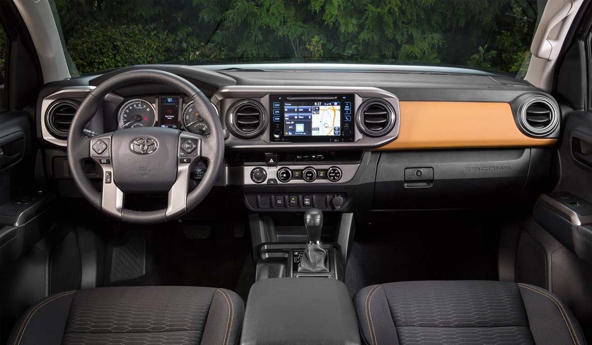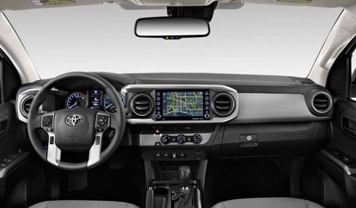 تأتي طرازات 2021 من تويوتا تاكوما بتصميم داخلي مليء بالتكنولوجيا. حتى الطرازات الأساسية تتضمن نظام صوت بستة مكبرات صوت وشاشة تعمل باللمس مقاس 7 بوصات و Amazon Alexa و Apple CarPlay و Android Auto وراديو القمر الصناعي وبلوتوث وثلاثة منافذ USB والتعرف على الصوت.