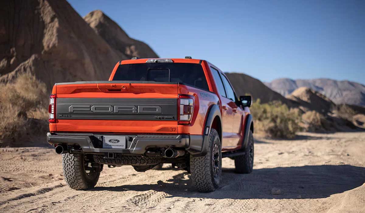 بشكل عام لو نظرنا الى الناحية الخلفية لسيارة فورد F 150 رابتور 2021 وسيارة فورد F 150 رابتور 2022 لا نرى هناك فرقًا بين السيارتين، وتتميز هذه السيارة بالخلفية المميزة الضخمة وايضا كلمة فورد FORD في الوسط، والمصد الخلفي الضخم اضافة الى العوادم الجميلة على الطرفين، ومصابيح السيارة الخلفية الجميلة.