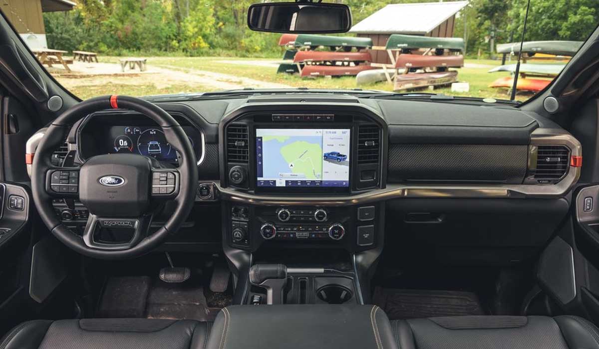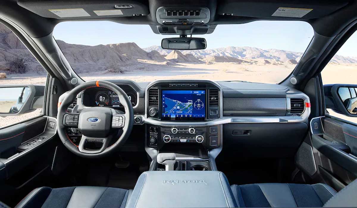 تهيمن على لوحة القيادة في رابتور شاشة لمس ضخمة مقاس 12.0 انش تدعم نظام المعلومات والترفيه Sync 4 القياسي للشاحنة. إلى جانب القدرة على التفاعل مع Amazon Alexa وتلقي تحديثات عبر الهواء، فهو يتميز بشبكة Apple CarPlay اللاسلكية و Android Auto.