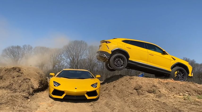 لنتحدث عن السيارات التي استعملت في الفيديو. الأولى وهي السيارة التي نفذت القفزة، لامبورجيني أوروس التي أطلقت سنة 2018 من علامة السيارات الخارقة لتكون أول اس يو في خارقة فهي مزودة بمحرّك في 8 مزدوج التيربو سعة 4 لترات ينتج 641 حصاناً ويصل سعرها الى 250,000$.