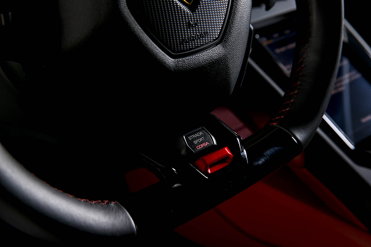 اخترنا وضعية Strada للقيادة على الطرقات العادية وانطلقنا في شوارع دبي، فاكتشفنا أن السيارة إيطالية أصبحت أقرب الى سيارة يومية، فنراها مريحة في القيادة، وهدير المحرك منخفض كما ان نظام التعليق ونظام التوجيه سلس ومريح.