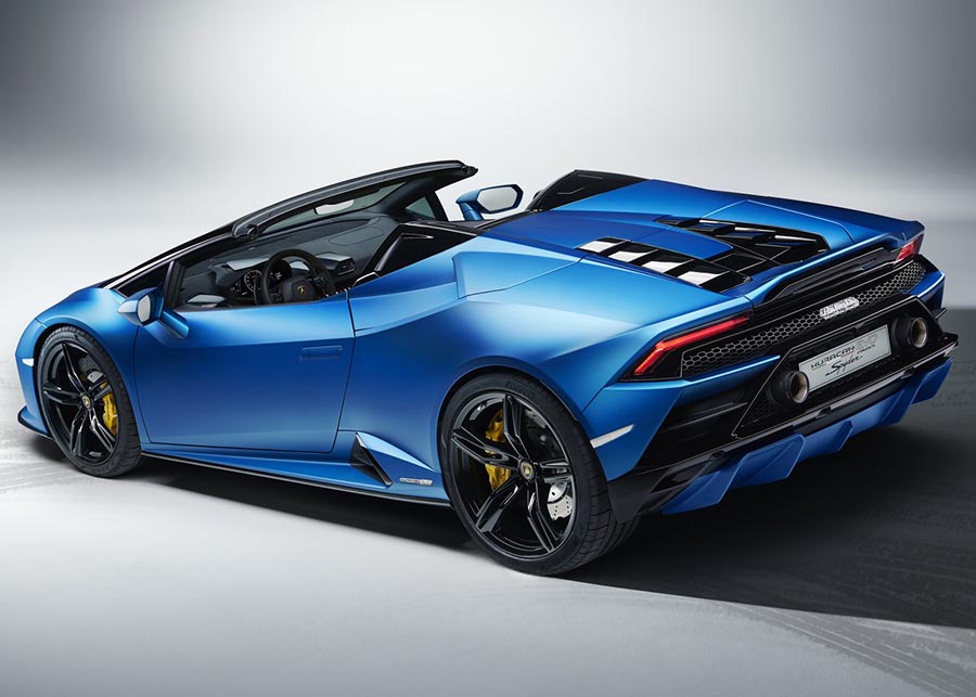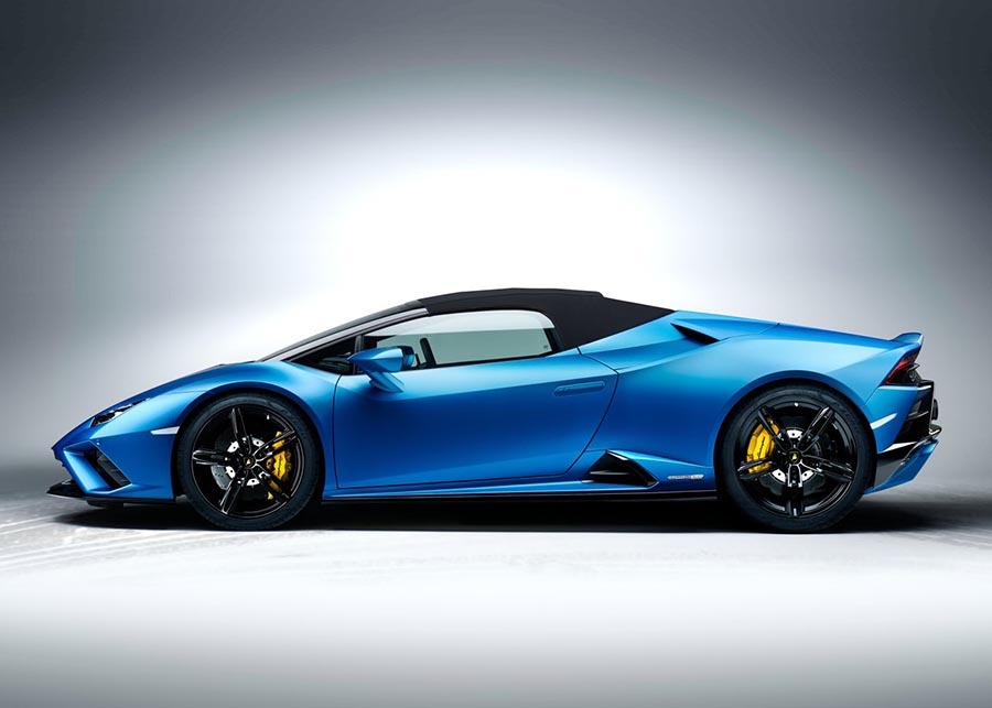 يساهم تصميم هوراكان EVO RWD سبايدر بتعزيز تكامل ووظيفة السقف غير الصلب خفيف الوزن. وتُعدّ Spyder سيارة لامبورغيني حقيقية أكان السقف مكشوفاً أم مغلقاً، وهي تتمتّع بخطوط رياضية متميّزة من كال ناحية بحيث تؤكّد أنها سيارة ديناميكية بالشكل والأداء بغضّ النظر إن كان السقف مكشوفاً أم مغلقاً.
