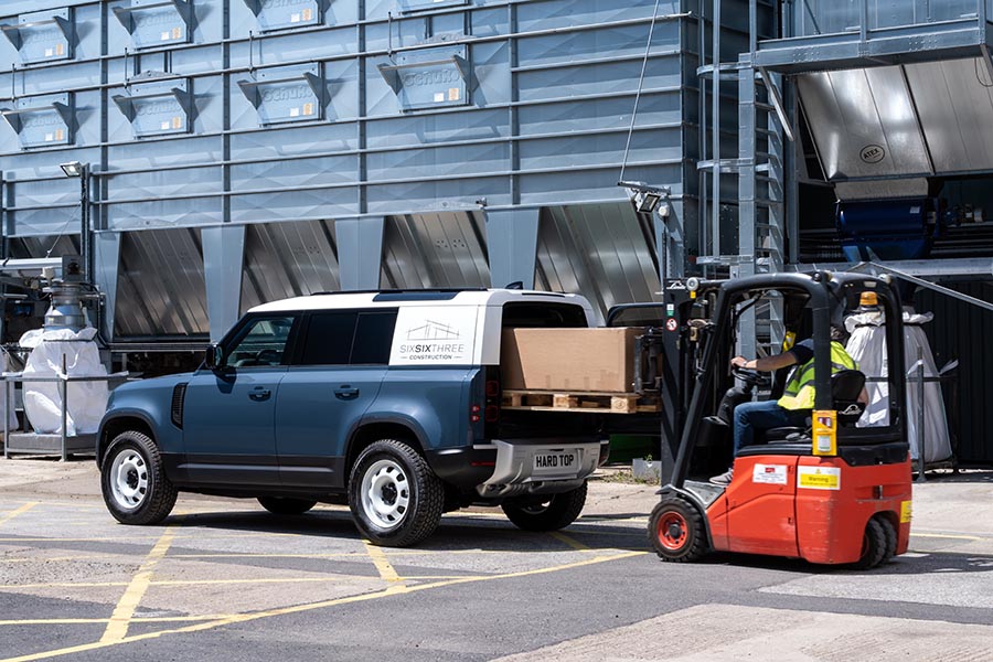 سعة التحميل المبهرة مع قدرة الجر البالغة 3,500 كغ تجعل ديفندر الجديدة سيارة دفع رباعي تجارية ممتازة، وفي حين لا يحتوي هذا الطراز على صف مقاعد ثاني أو ثالث، يجعل المقعد الأمامي الاختياري القابل للطي السيارة قادرة على الاتساع لما يصل إلى ثلاثة أشخاص، ويحافظ نظام مرايا ClearSight للرؤية الخلفية من لاند روفر على رؤية واضحة عند ما يكون المقعد القابل للطي مشغولاً، أو حين تكون مساحة التخزين ممتلئة، حيث تستخدم هذه التقنية التغذية القادمة من الكاميرا الخلفية لتمنح السائقين رؤية دائمة بلا عوائق.