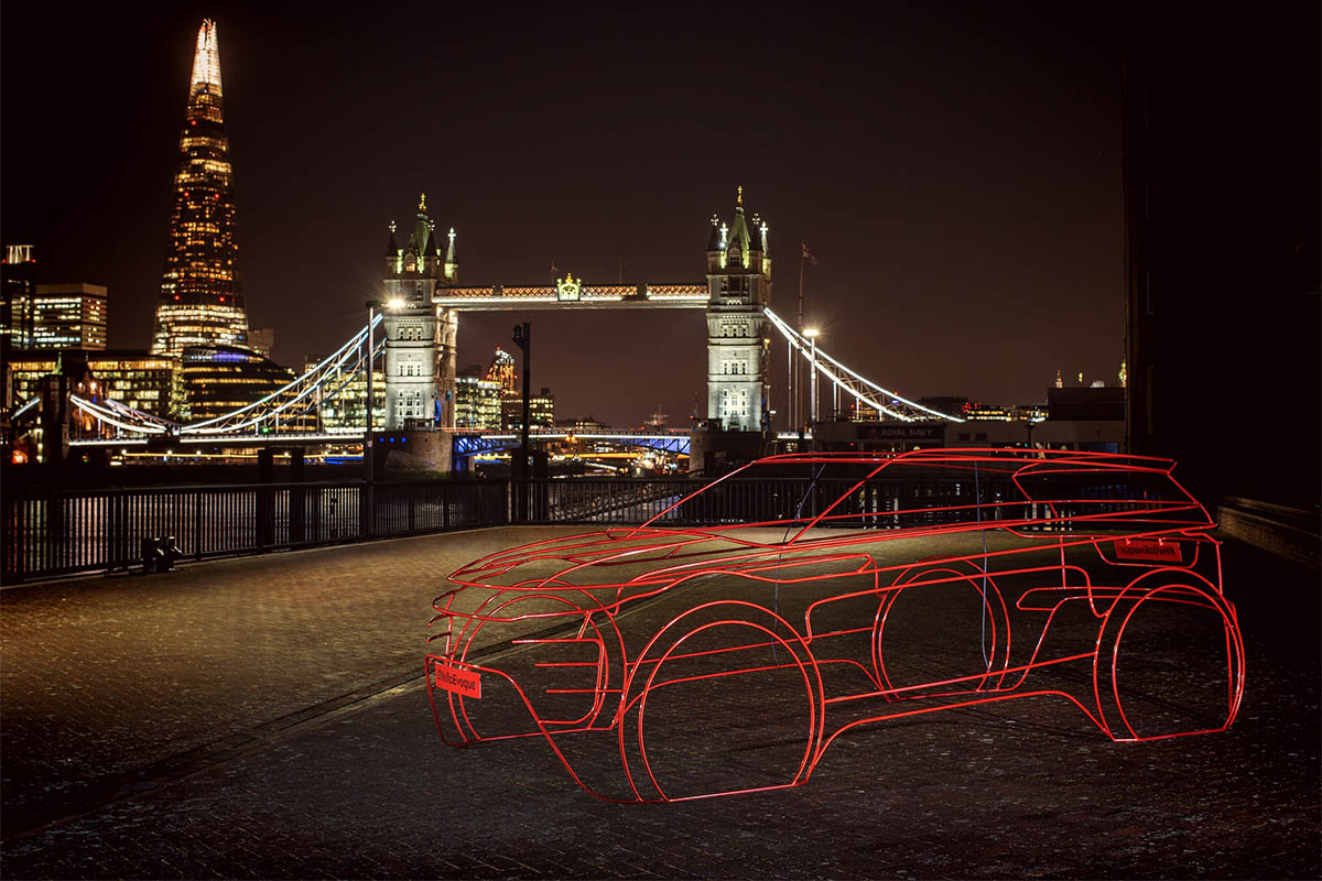 بدأت لاند روڤر العد التنازلي لإطلاق نسختها الأحدث من سيارة رينج روڤر إيفوك عالمياً بعرض مجموعة من المجسمات التمثيلية مصنوعةً من الأسلاك بالحجم الكامل للسيارة. وقد استوقفت هذه الأعمال الفنية المارة في مواقع عدة من العاصمة البريطانية لندن.