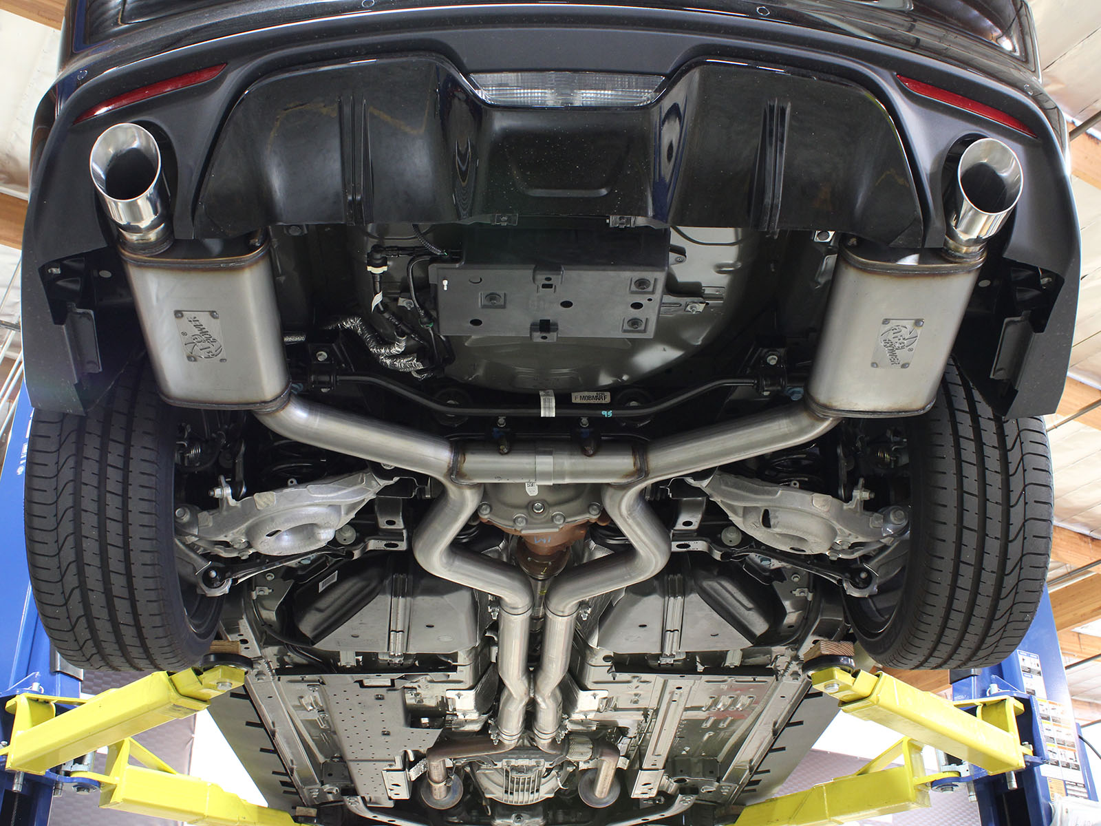 تنضم الأنابيب الخارجة من كل مشعب في أنبوب على شكل Y قبل أن تؤدي إلى المحول الحفاز وكاتم الصوت. وبالتالي فإن نظام العادم المزدوج لديه اثنين من أنابيب Y، وقد يكون هناك أنبوب ثاني على شكل H قبل المحول الحفاز للمساعدة في التحكم بالضغط وزيادة القدرة الحصانية.