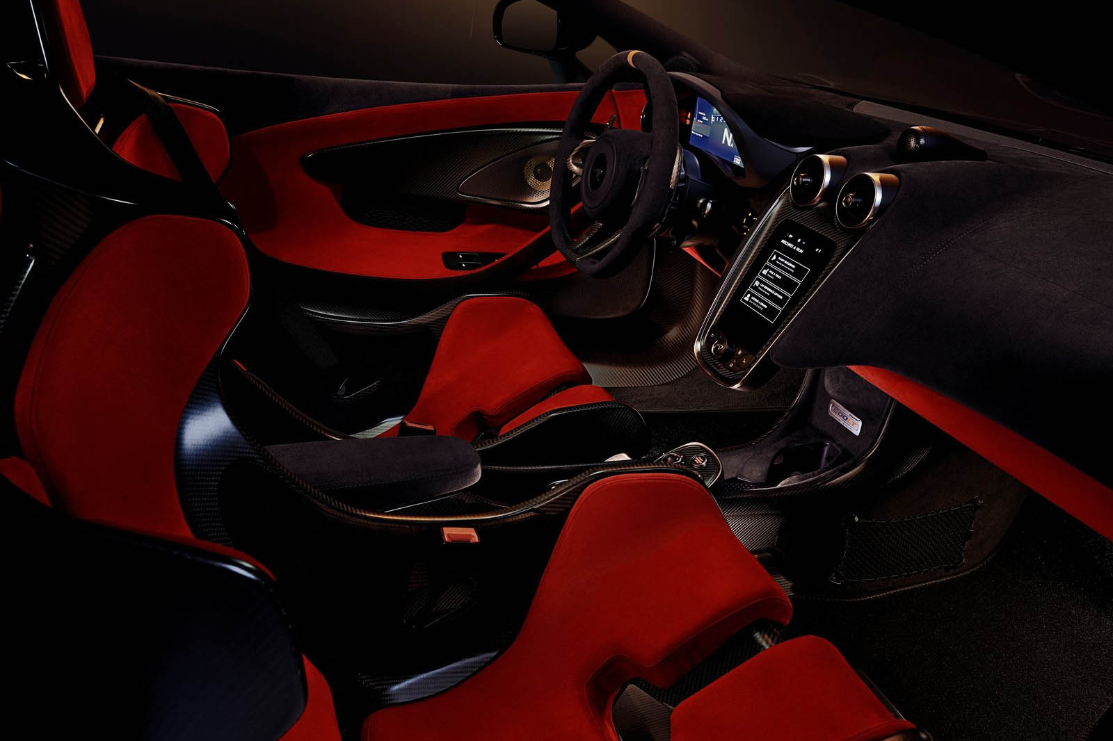 مقصورة السيارة على ناحية أخرى تأتي فاخرة راقية بمقاعد سباقات بألياف الكربون وجلد ألكانتارا، كما يمكن للعملاء طلب مقاعد ألياف كربون فائقة الخفّة وسقف أو رفارف أمامية بألياف الكربون.