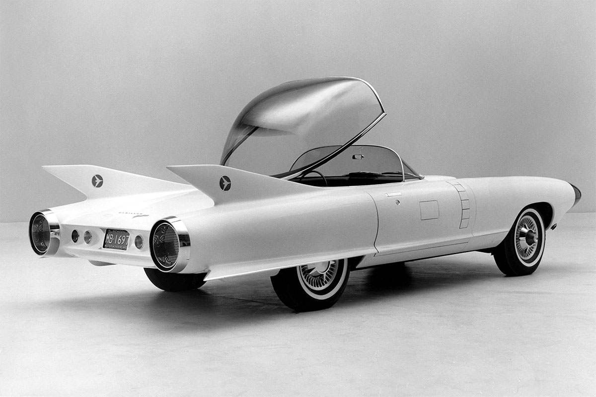 تحمل السيارة تصميم مستقبلي للغاية بشكل يشبه سفن الفضاء مع زجاج أمامي على هيئة قبة زجاجية ذات طرف علوي فضي عاكس لأشعة الشمس، بشكل يثبت قدرة مصممي هذه الحقبة على التفكير التقدمي، كما يمكن فتح الأبواب بضغطة زر، من دون أن ننسى وجود محرك V8 أمامي بقوة 325 حصان مع أنبوب عادم فريد.