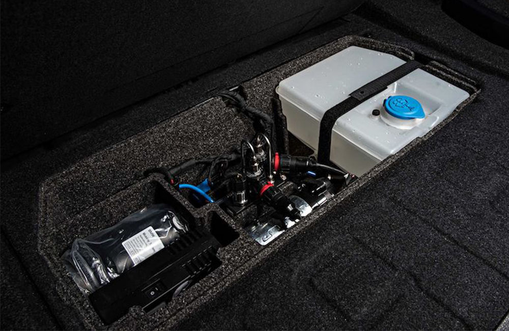 إلا أن المدهش في هذه السيارة الرائعة يكمن في أنه تم تزويدها بتقنية حقن المياه Water injection system حيث ستجد في صندوق الأمتعة خزان يحتوي على 5 ليتر من المياه. هذه التقنية تعمل مع نظام التيربو، كيف؟