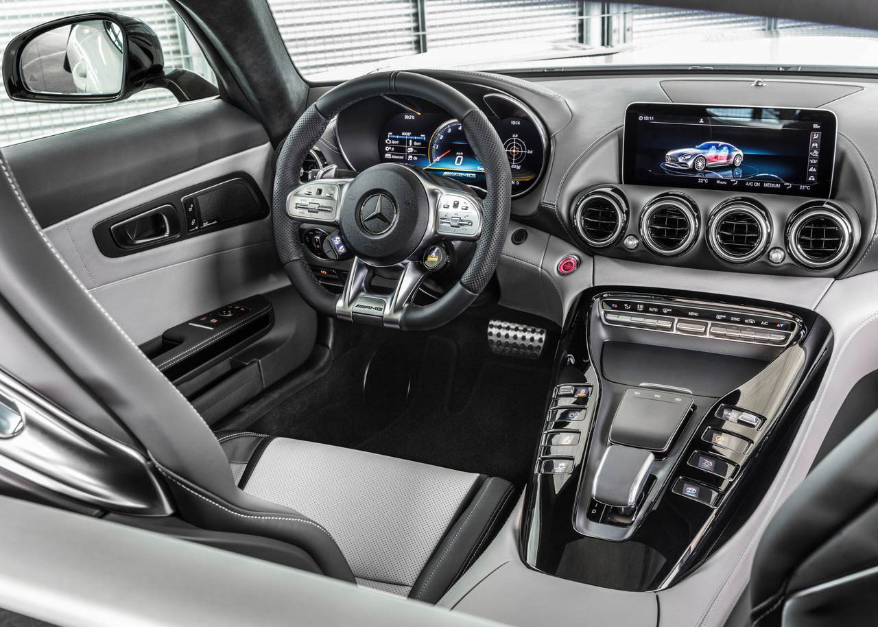 بالنسبة للتحديثات التي طرأت على موديلات AMG GT القياسية، فتشمل مصابيح أمامية LED جديدة ومشتت هواء خلفي مختلف وأنبوبي عادم دائريين في النسخ الأساسية من المجال، مع استخدام أنبوب مركزي كبير لنسخة GT R، محاط بأنبوبين صغيرين مدفونين في مشتت الهواء.
