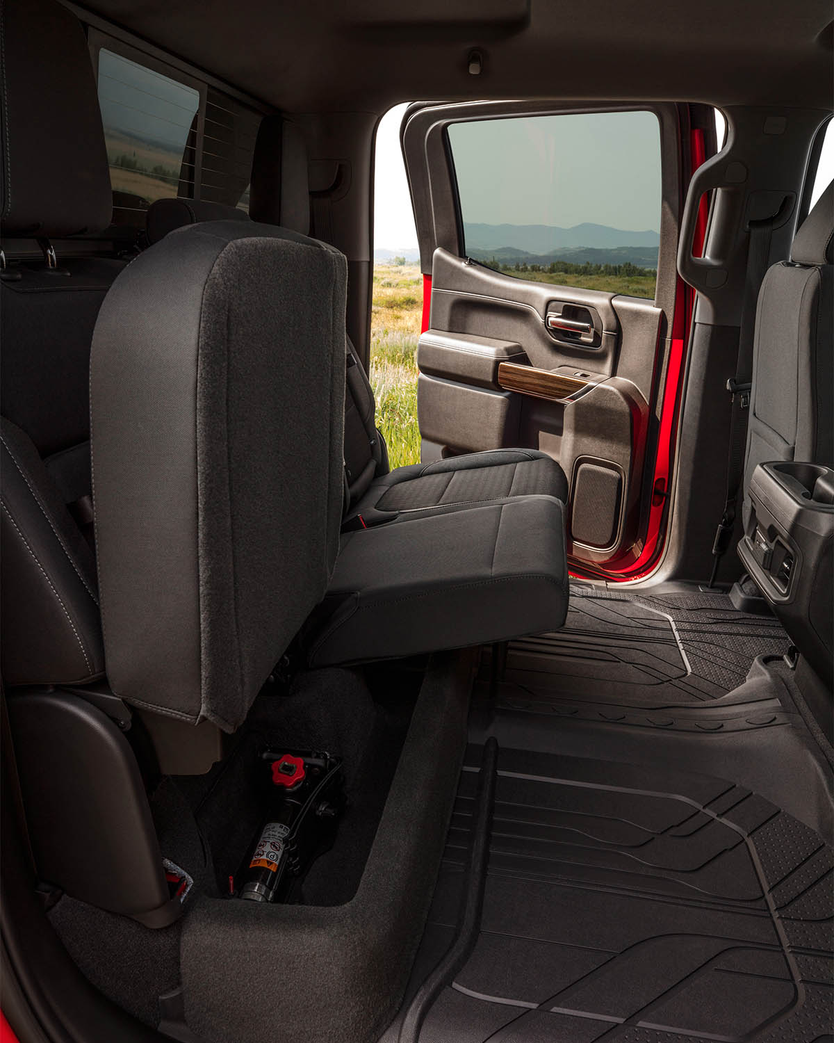 بجانب المقاعد ذات المستوى العالي، ستلاحظ فور جلوسك داخل سلفرادو 2019 أنك داخل مقصورة واسعة بالفعل، خاصة إن كنت قد قمت بتجربة الموديلات السابقة، فسوف تجد أن هناك متسع من مساحة الأقدام بكلا الصفين من المقاعد، حتى للأشخاص طوال القامة، الى جانب وجود اثننين من مناطق ربط مقاعد الأطفال بالصف الثاني من المقاعد في حالة كنت تود اصطحاب كافة أفراد عائلتك في مغامراتك.