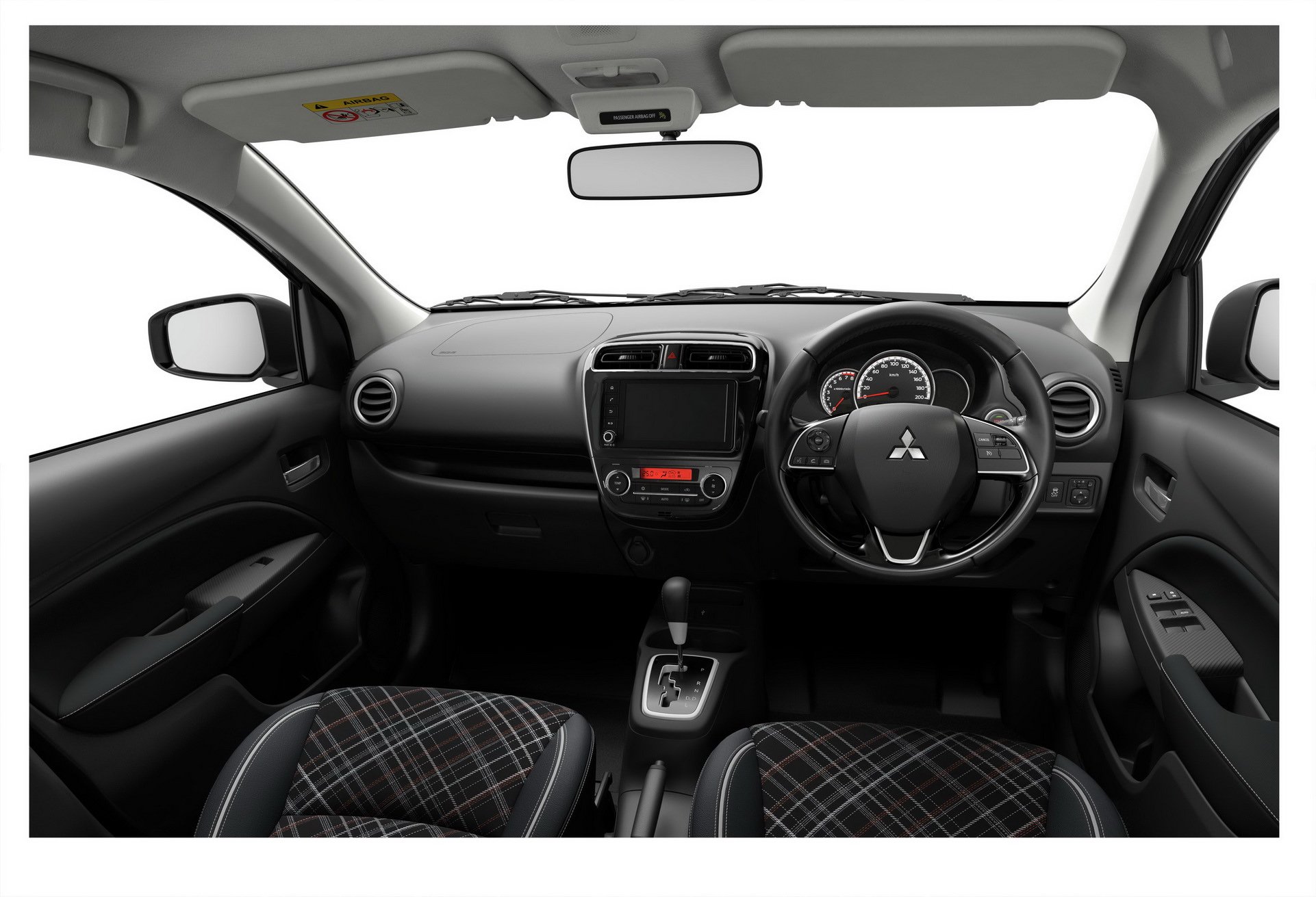 داخل المقصورة، تحظى طرازات ميراج واتراج المحدثة بكسوة جديدة من الخامات الناعمة مع نوافذ كهربائية وتصميم رياضي يحاكي ألياف الكربون لزخارف الداخلية، كما حصل الطرازين على مقاعد جديدة مغطاة بخليط من الأقمشة والجلود الصناعية في ميراج، فيما تأتي اتراج بمقاعد من الجلد الصناعي فقط مع تطريزات مميزة للطرازين.