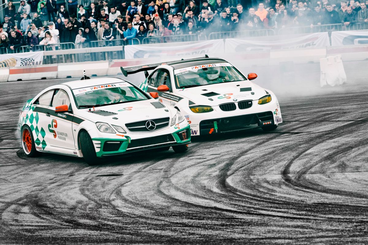 هذا، وبالتأكيد لم يكتمل المعرض من دون استعراضات حرق الاطارات والانجراف التي جذبت مئات المشاهدين الذين تهاتفوا لرؤية سياراتهم المفضلة تقوم بمناورات مذهلة وتصدر اصوات تفجر طبلة الاذن، فضلاً عن الغيوم البيضاء الناتجة عن اشتعال الاطارات.