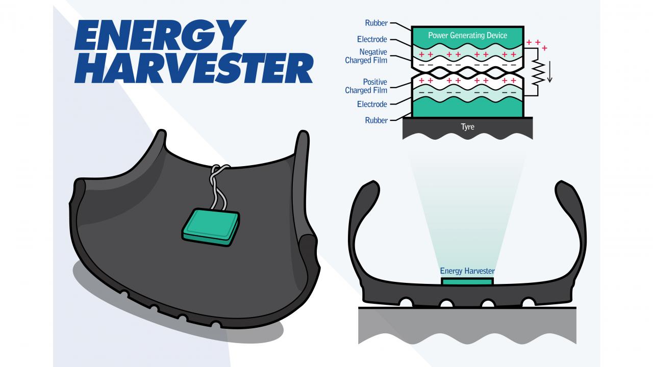 تأتي التقنية الجديدة التي نتحدث عنها اليوم باسم The Energy Harvester "حاصد الطاقة"، وهو عبارة عن جهاز صغير يوضع داخل الإطار من أجل تحويل الطاقة الكهربائية الساكنة الناتجة عن حركة العجلات إلى طاقة يمكن استخدامها.