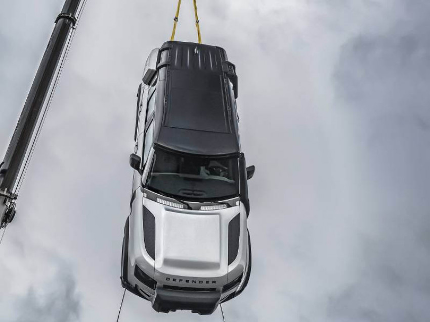 وتم تصميم هذا الاختبار الأقصى للقوة كي يثبت متانة منصة D7x المصنوعة من الألومنيوم والمستخدمة في سيارة ديفندر، من خلال تعليق سيارات من طراز 110 غير المعدل برافعة من حلقات القطر الخاصة بهذه السيارات لا غير.