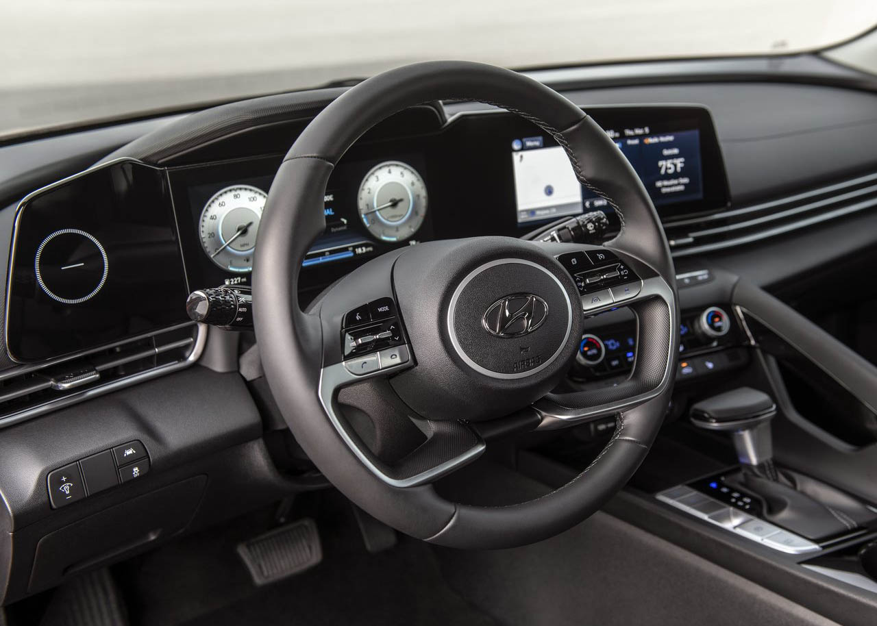 أصبحت هيونداي النترا 2021 أكثر تفوقاً وعصرية من حيث التقنيات، حيث حصلت على تصميم يتبع أحدث صيحة للشاشتين المتوازيتين مثل السيارات الفاخرة، وذلك عبر شاشة عدادات رقمية قياس 10.25 انش، الى جانب شاشة لمسية قياس 10.25 انش لنظام الترفيه المعلوماتي.