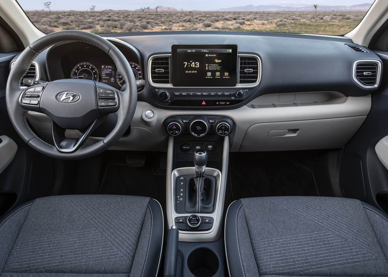 تعد هيونداي فينيو أصغر من كروس أوفر كونا الشهير في أسواقنا، حيث أنها أقصر وأنحف منها، ولكنها تتميز بمقصورة عملية تضم عجلة قيادة جلدية، شاشة نظام ترفيه معلوماتي قياس 8 إنش تدعم أنظمة أندرويد أوتو وآبل كار بلاي، منافذ شحن USB، كاميرا رؤية خلفية، وشاشة عدادات قياس 3.5 إنش.