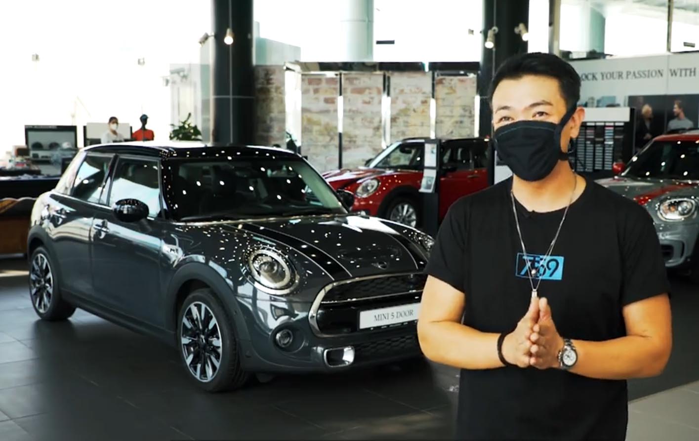 واحتفالًا بهذه الشراكة، يقود ونهو سيارة MINI Cooper خمسة أبواب باللون الرمادي المزدان بالخطوط السوداء التي تشتهر بها علامة MINI.