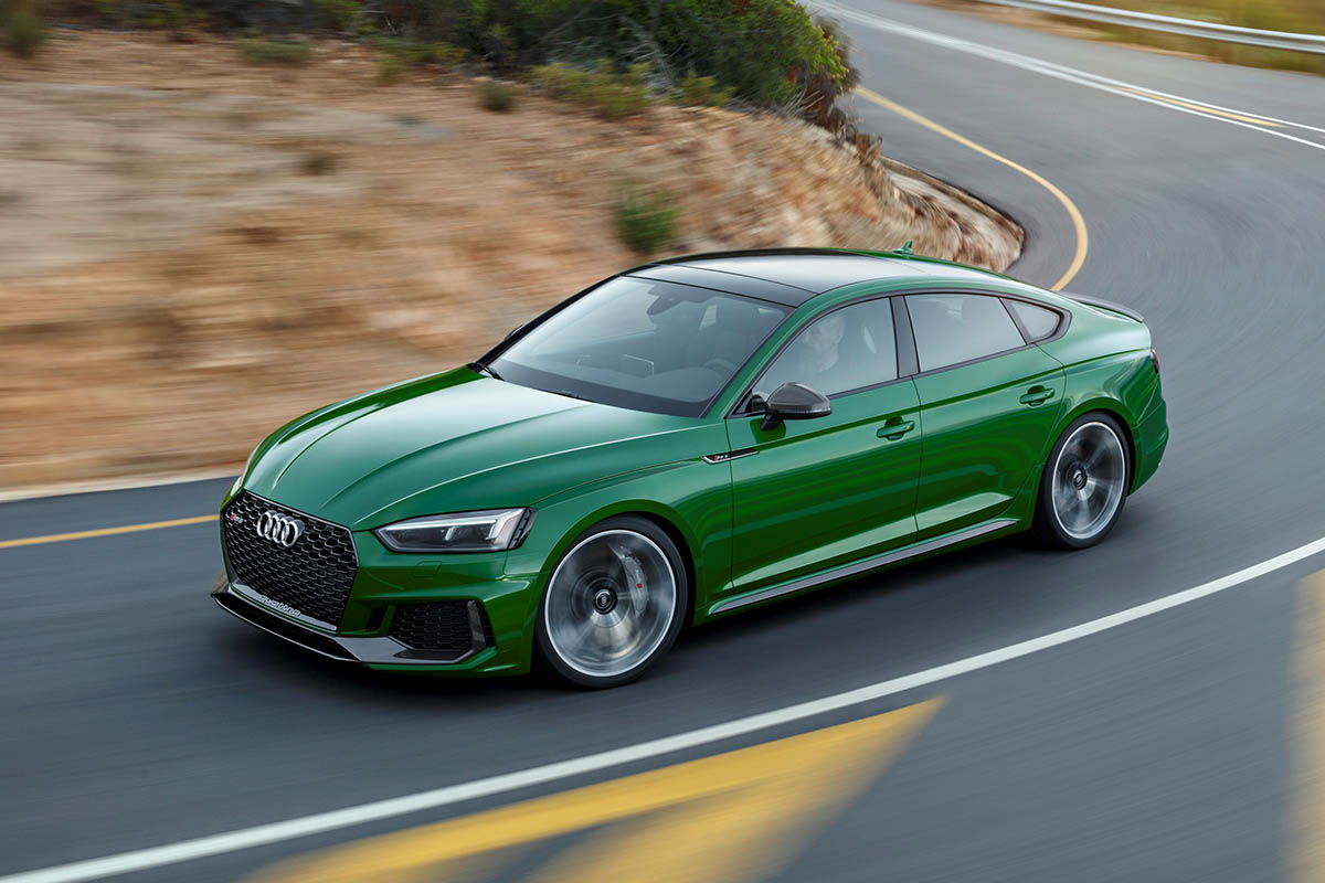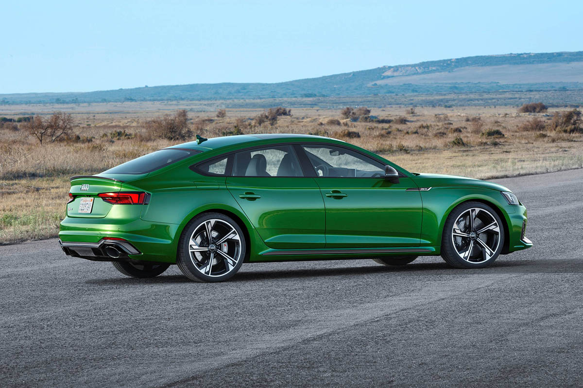 تأتي سيارة RS 5 Sportback بعجلات معدنية مصقولة قياس 19 بوصة كتجهيز أساسي، فيما تتوافر عجلات بقياس 20 بوصة كتجهيز اختياري. ويستطيع العملاء تخصيص سياراتهم من طراز RS 5 Sportback بمجموعات التصميم باللون الأسود اللامع والألمنيوم غير اللامع والكربون. وتتفرد سيارات Audi RS 5 بلون الطلاء الأخضر سونوما ميتالك.