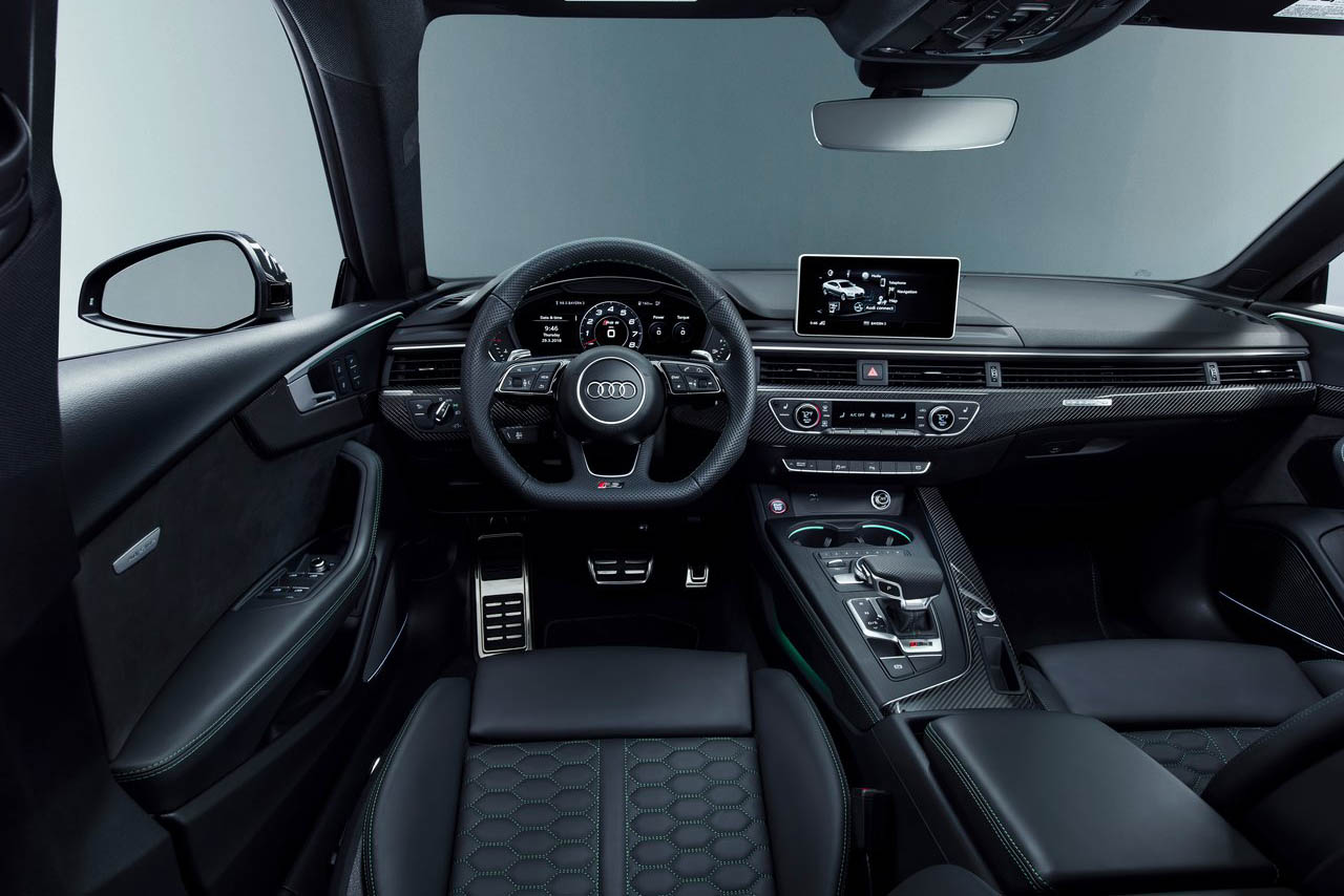 تزخر المقصورة الداخلية، المطلية باللون الأسود بالكامل، بالتجهيزات العملية الداخلية ومساحة تستوعب خمسة أشخاص؛ حيث يبرز الطابع الرياضي للسيارة الكوبيه عالية الأداء ذات الخمسة أبواب في تفاصيل من قبيل المقاعد الرياضية طراز RS المكسوة بجلد نابا الناعم والذي يأتي مزيناً بأنماط تتخذ شكل قرص العسل كتجهيز اختياري، وعجلة القيادة RS الرياضية متعددة الوظائف المكسوة بالجلد.