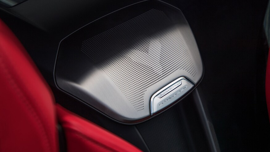 يحمل مكبر الصوت الوسطي المتواجد بين المقعدين شعار كورفيت، حيث أن ثقوب مكبر الصوت مصممة بطريقة خاصة كي يمكن للسائق رؤية شعار كورفيت من زاوية محددة أثناء الجلوس بالداخل، اذ أن النمط المتواجد على المكبر يمكن رؤيته أيضاً من مسافة محددة.
