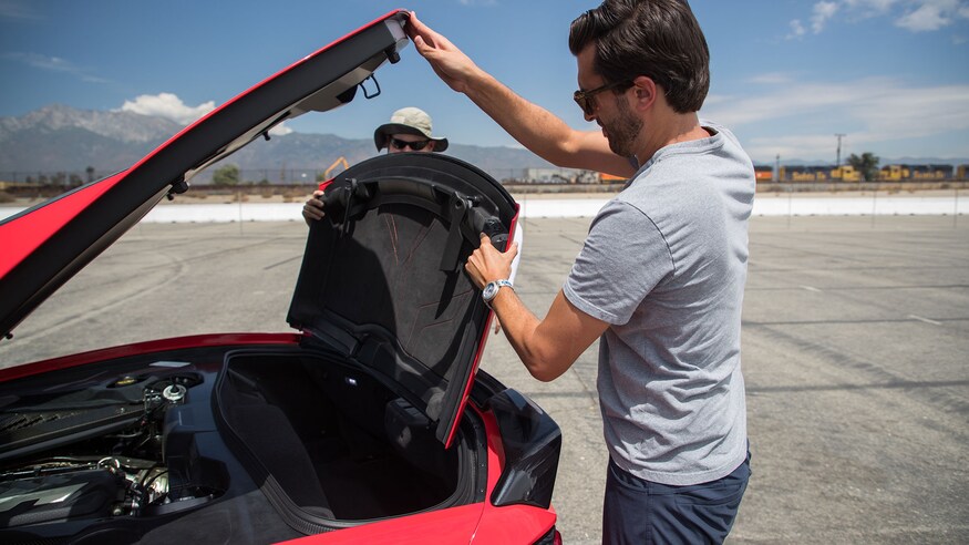 تأتي كورفيت C8 مع سقف قابل للنزع بسهولة، سواء كان السقف من الزجاج أو ألياف الكربون أو بنفس لون الهيكل، حيث يمكن بعد ذلك تخزينه بأمان تام في الصندوق الخلفي عبر اثنين من الخطافات الخاصة التي تمسك به بشكل ثابت.