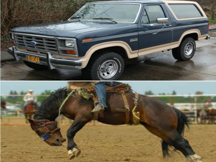 تشير كلمة برونكو للحصان البري الذي يقاوم الترويض، ولهذا اختارت فورد هذا الاسم للاس يو في الكلاسيكية ثنائية الأبواب.