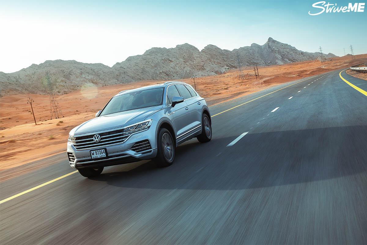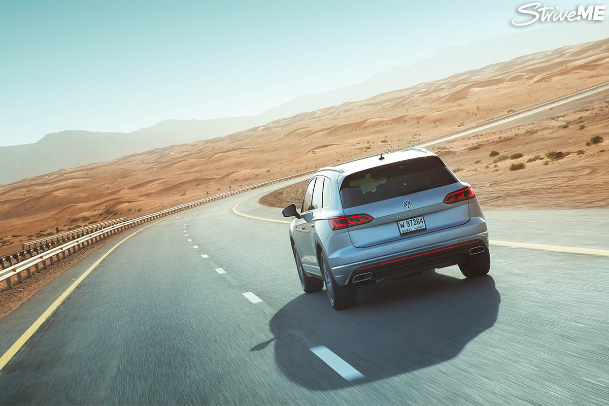 بعد التأمل في المقصورة الداخلية، انطلقنا في رحلتنا على متن طوارق الجديدة كليا المجهزة بمحرك V6 TFSI سعة 3 لتر ونظام التحكم النشط 4Motion بالدفع الرباعي، علما ان طوارق متوفرة أيضاَ بمحرك رباعي الاسطوانات TFSI سعة 2 لتر.