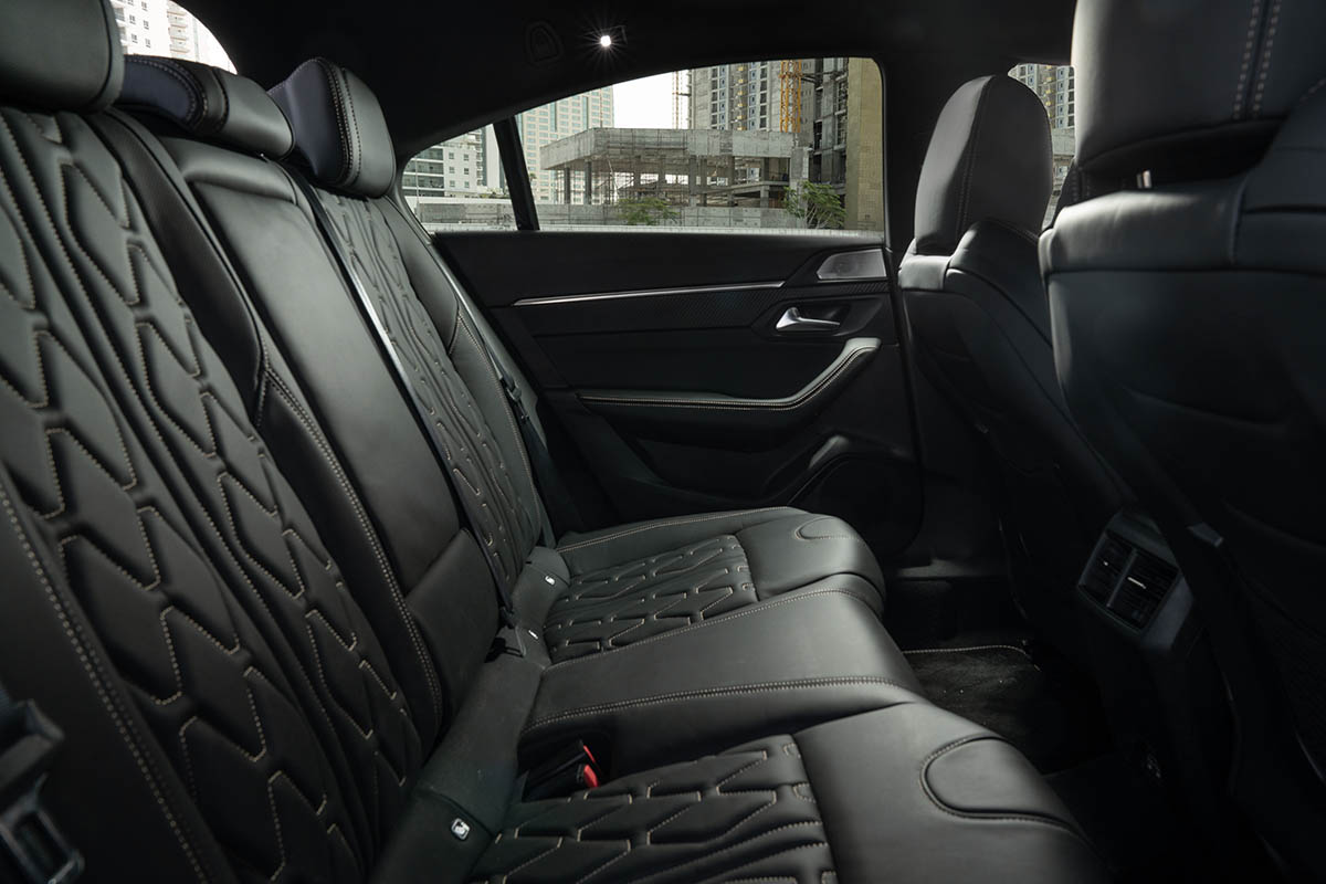 فتحنا اولا الباب الخلفي وقبل الغوص في تفاصيل الفخامة الداخلية نجد بأن الباب الخلفي Frameless اي لا اطار له، وذلك حفاظاً على التصميم الرياضي للسيارة. المواد المستعملة في المقصورة الداخلية مزيج من بيانو بلاك او جلود Nappa وحتى الالومينيوم تبهر الابصار، واول ما يلفت انتباهك هي الشاشات الموزعة على داخلية السيارة، فهي مستقبلية بامتياز، ويمكن تغيير الوان العدادات او ما تظهر من معلومات على العدادات لتناسب احتيجاتك.