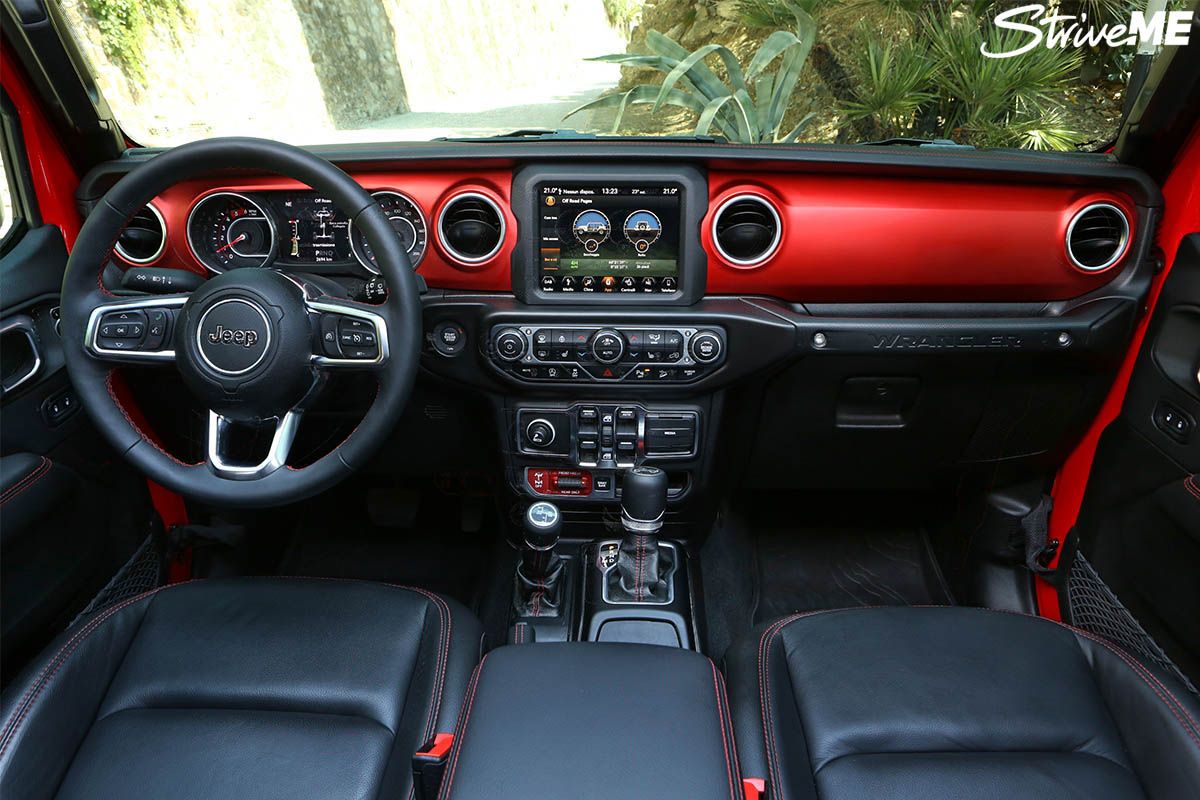 ولكن ما هي المغامرة في الهواء الطلق من دون بعض التراب او الوحل؟ وبما ان المقصورة الداخلية الان اصبحت اكثر تطورا على صعيد التكنولوجيا مع اعتماد نظام Uconnect جديد متوافق مع أبل كاربلاي وأندرويد أوتو واختيار بين شاشات باللمس قياس 7 أو8.4 انش، كما اصبحت اكثر جمالا مع اعتماد مواد عالية الجودة، في حين اضاف مهندسي رانجلر اللمسة الأخيرة لحماية المواد العالية الجودة في المقصورة مع اعتماد خامات داخلية قابلة للغسل بالكامل وغطاء مطاطي وقائي لشاشة نظام المعلومات والترفيه.