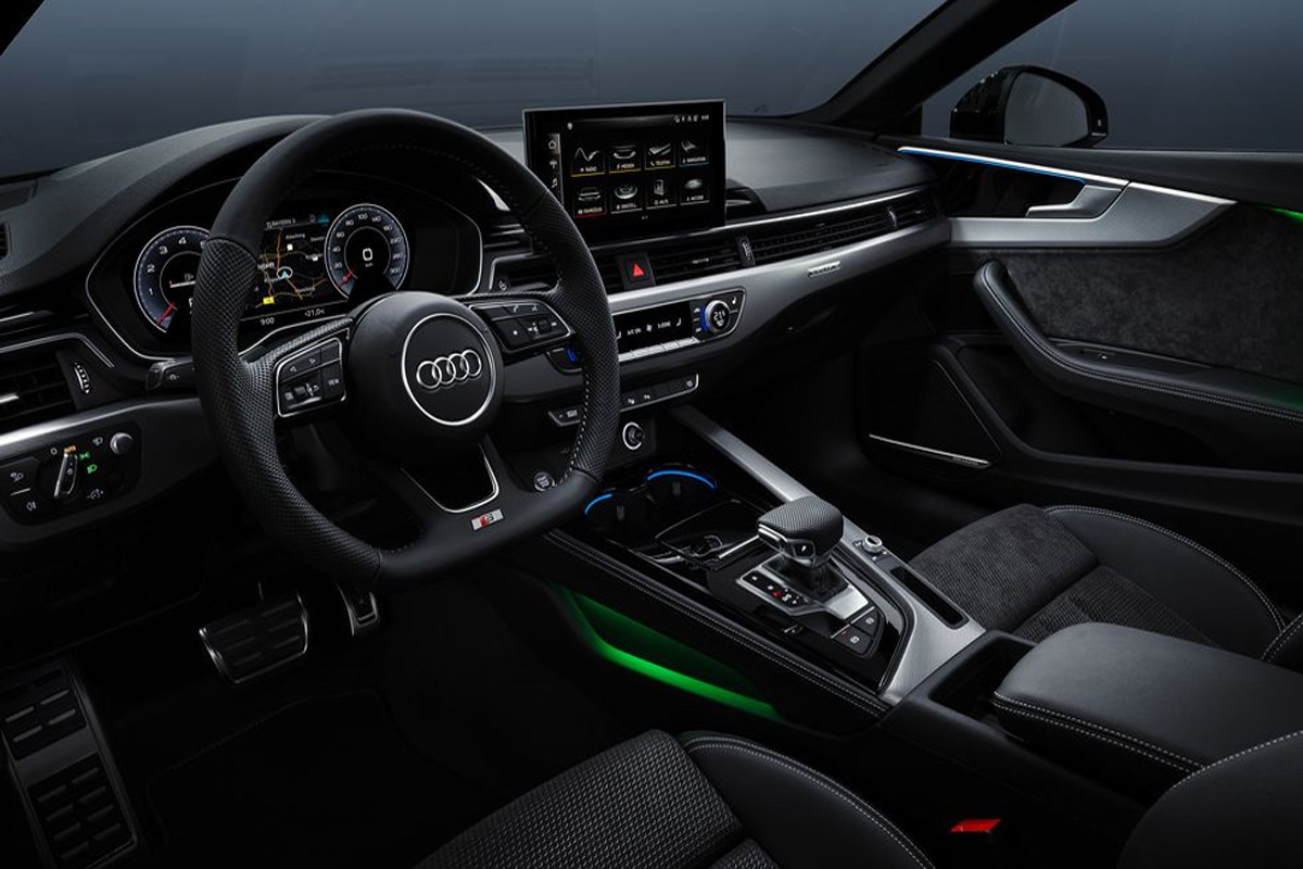 تخلق العناصر المصممة أفقيًا في الداخل إحساسًا رائعًا بالمساحة، تؤكده بشكل أكبر المواد الحصرية، ونظام المعلومات والترفيه الحديث من أودي، والكونسول الوسطي المعاد تصميمه، وحواف الأبواب ذات المظهر الزجاجي، والإضاءة المحيطة الاختيارية بتقنية LED.