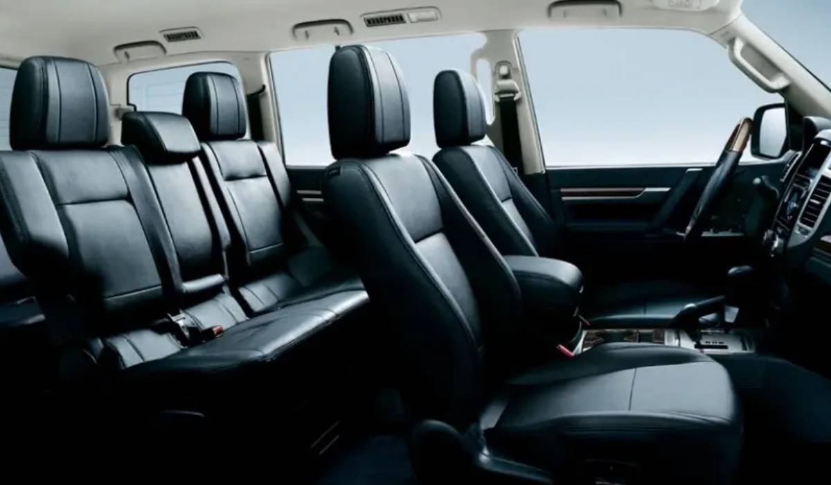 وفي الداخل، عند النظر إلى مقصورة سيارة ميتسوبيشي باجيرو 2022، يمكننا رؤية أنها تقدم مستويات عالية من الأصالة والراحة، حيث تأتي بمقود بتصميم قديم متعدد الوظائف، وبه لمسات من الخشب لإعطاء لمسة فاخرة على المقصورة الداخلية، كما يوجد أيضاً الخشب في معظم المقصورة الداخلية، أما عن المقاعد فتتوفر باجيرو 2022 بـ7 مقاعد من الجلد مع تحكم يدوي في المقاعد الأمامية، مع إمكانية طي المقاعد الخلفية في الصف الثاني والثالث لتوفير مساحة تخزيينة أكبر في صندوق الأمتعة، مع وجود حاملات أكواب أمامية، صندوق كونسول أرضي، براد مشروبات في الكونسول، مرآة زينة مضاءة مع غطاء وحامل بطاقة لحاجبات الشمس، مصابيح مقصورة امامية ومصباح الحالة في السقف ومصابيح موضع الأقدام،