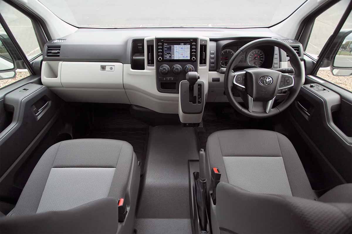 يأتي باص هايس 2021 بنوعين مختلفين، نسخة Hiace Panel Van لحمل البضائع و Hiace Commuter التي تحصل على المقاعد الخلفية لتعمل كناقلة للناس. تشمل الميزات القياسية في الباص: مكيفًا أماميًا/خلفيًا مزدوجًا، ونظام توجيه معزز، وأقفال أبواب كهربائية، وصندوق أدوات، ومصابيح هالوجين أمامية، وعجلات فولاذية مقاس 15 بوصة. تحصل بعض الأسواق على ميزات اختيارية مثل القفل عن بُعد. اعتمادًا على السوق، يمكن للمستهلكين اختيار سقف عادي أو سقف مرتفع بهيكل عريض القاعدة.